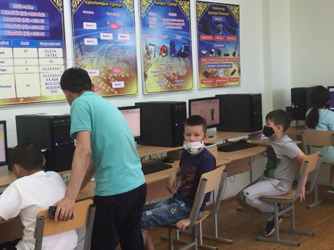 Жазғы алаңымызда жұмыс жасаған ғылыми – техникалық бағыттағы үйірмелердің бірі «Ақпараттандыру» үйірмесінде Ж.Шериев балаларға компьютер арқылы сурет салудың қыр – сырларын меңгертті. Балалар табиғаттың төрт мезгілін графикалық сурет түрінде салып, алдағы уақытта IT үйірмелеріне қатысамыз деген қызығушылықтарын да танытты.
