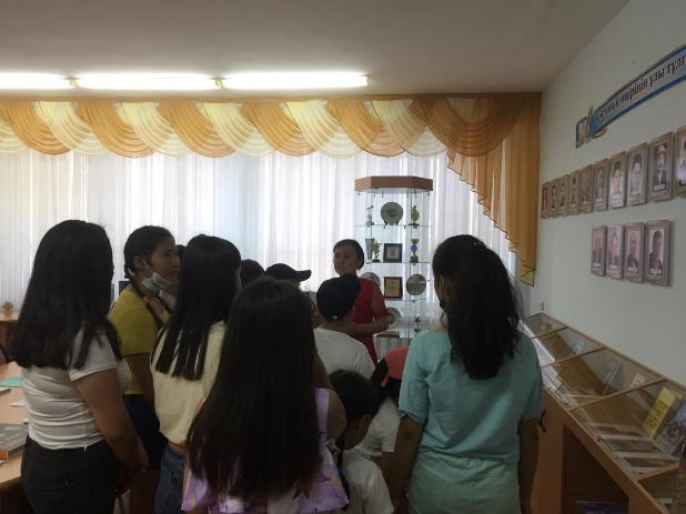 Жазғы демалыс алаңымыздың алғашқы күнінде мұражай қызметкері Ф.Қ. Ембергенова балаларды «Өлкетану» мектеп мұражайының бүгінгі күнгі тыныс – тіршілігімен таныстырды.