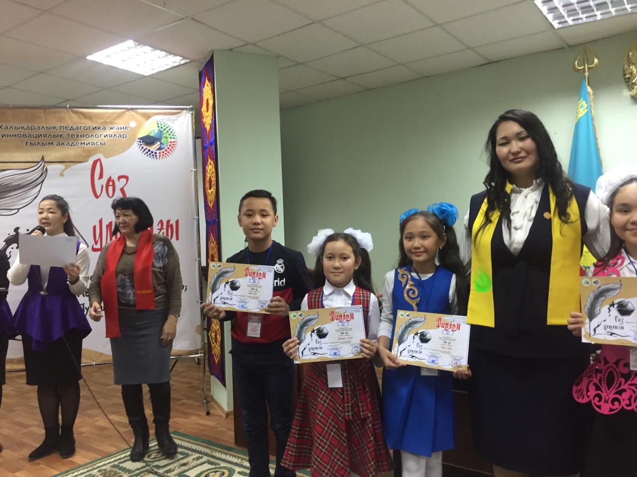 Aqtóbe qalasynda ótken III-shi Respýblıkalyq "Sóz ulylyǵy" atty ádebı shyǵarmashylyq baıqaýyna mektebimizdiń atynan qatysqan oqýshylar júldeli oryndarǵa ıe boldy!