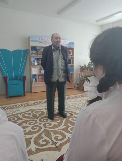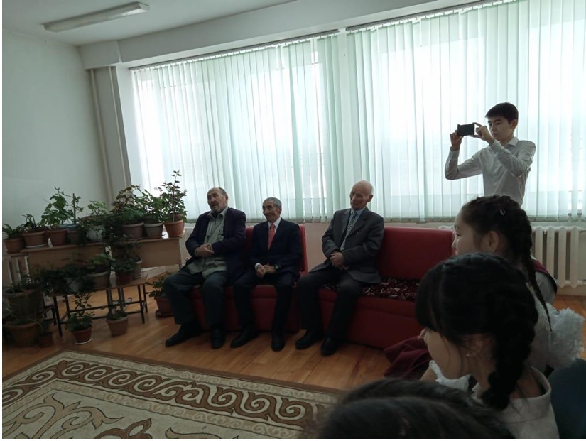 Суретте: 10 «Ә» сынып білім алушыларында қонақта Рудный қаласының ардагерлер ұйымының төрағасы - Бексейітов Сәлімгерей Сұлтанғазыұлы және ардагерлер ұйымының мүшелері - Жаман Жақсыбайұлы, Жұмабек Себайұлы, Қайырбай Сәлімұлы.