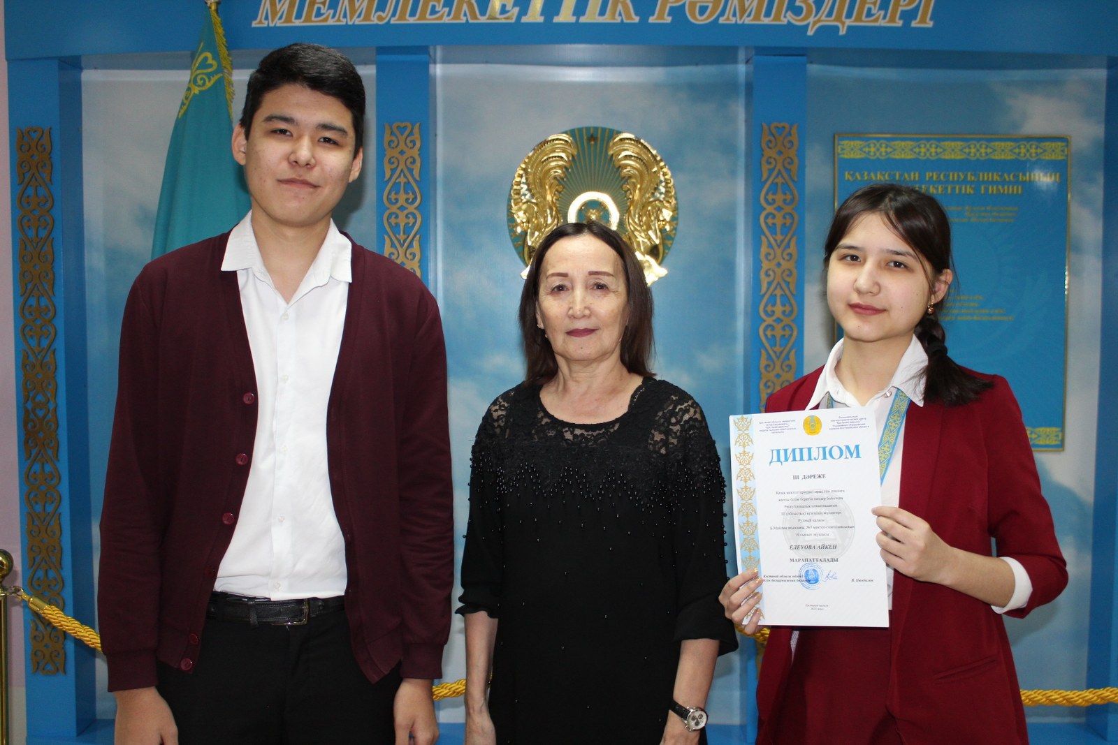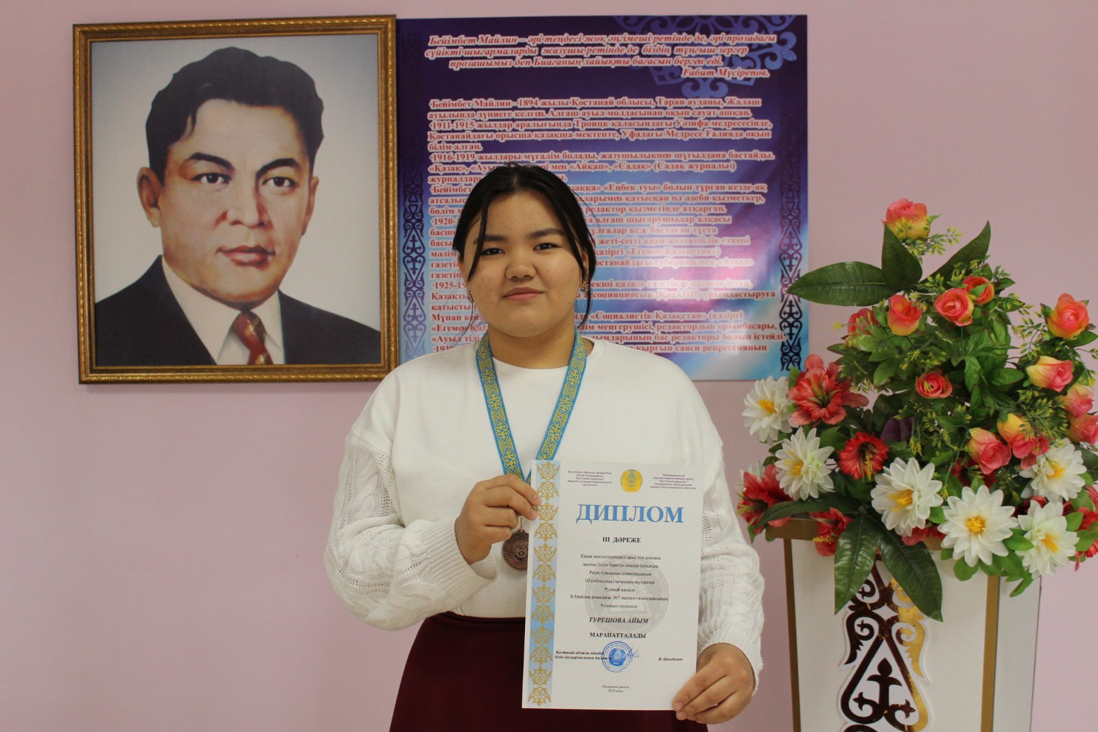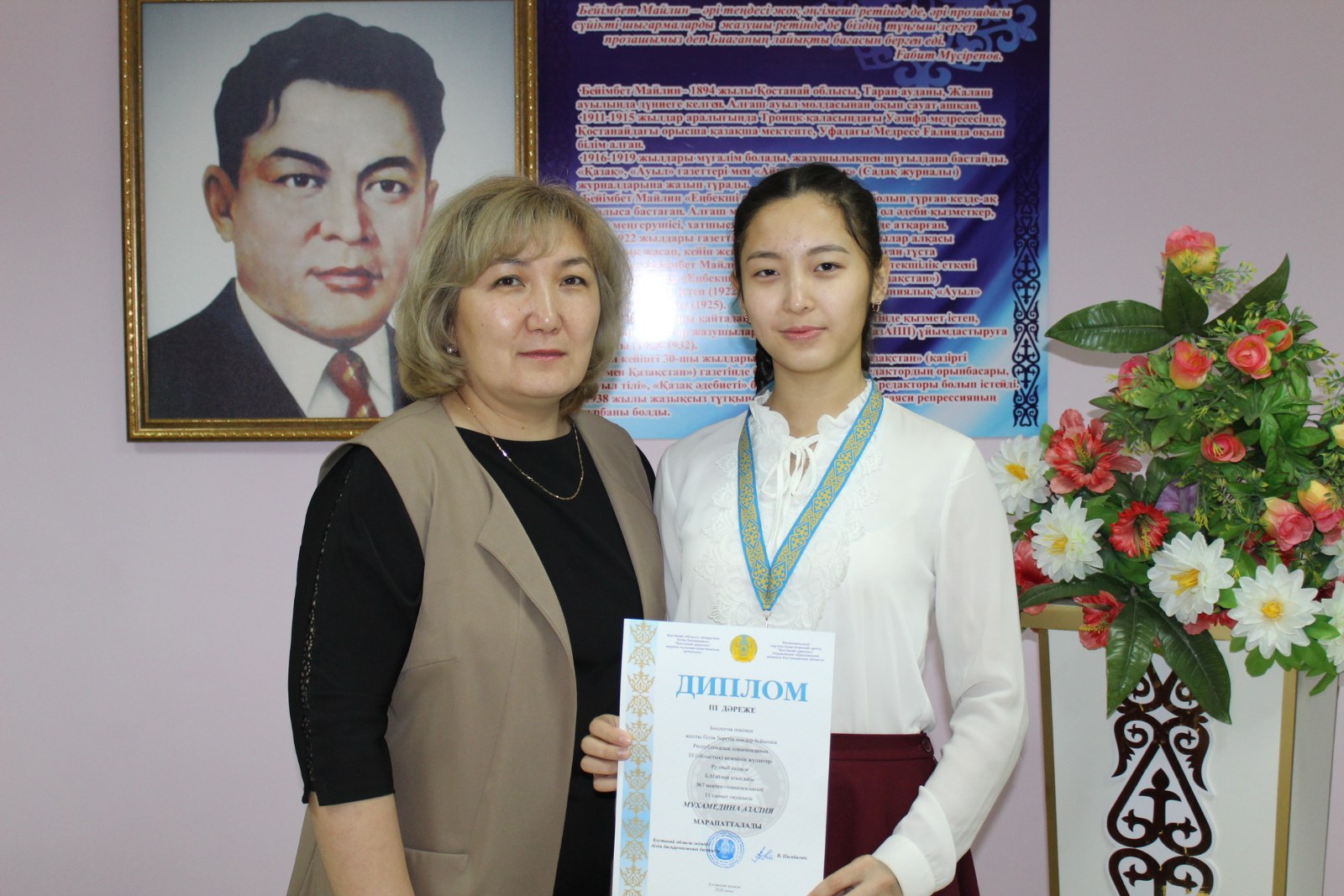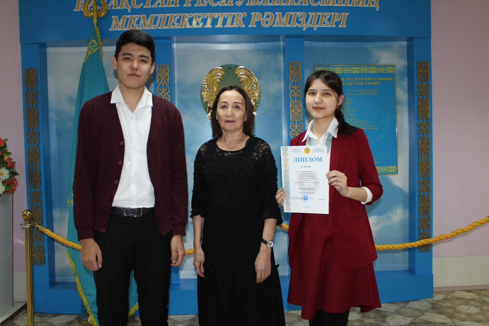 «Жалпы бiлiм беретiн пәндер бойынша республикалық олимпиадаларды ұйымдастыру және өткiзу» қағидасы негізінде «Қостанай дарыны» ӨҒПО ұйымдастыруымен Қостанай қаласында 2020 жылдың 6-7 қаңтар аралығында Республикалық олимпиаданың екінші кезеңiнде теориялық және эксперименттiк тапсырмаларды ойдағыдай орындап мектебіміздің намысын қорғап келген жас білімпаздар, мектебіміздің даңқын асырып, биік жетістіктерге жеткізер мектеп мақтаныштары Абдрахманова Гүлжамал қазақ тілі мен әдебиеті пәнінен 1 - орын, Мухамедина Азалия биология пәнінен 3 – орын, Елеуова Айкен және Турешова Айым орыс тілі және әдебиеті пәндерінен 3 – орын иегерлерін құттықтай отырып, алдағы Республикалық сынақта сүрінбей өтіп, өз білімдерін жоғары деңгейде көрсетулеріне тілектеспіз!