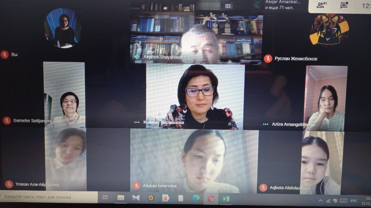 Қараша айының 13 – ші жұлдызында жерлес ақынымыз, әңгіме жанрының хас шебері Бейімбет Майлиннің туылғанына 126 жыл толуына орай мектеп – гимназиямыздың басшысы, филология ғылымдарының магистрі Бірманова Қымбат Исланбекқызы мен Бейімбеттанушы ғалым, профессор, филология ғылымдарының кандидаты, драматург, көсемсөзші – журналист Ақылбек Шаяхметов және Би ағаның немересі Сейітжанова Дәметер Әбілқасымқызының онлайн кездесуі өтті. Кездесуге мектеп – гимназияның білім алушылары тарапынан бірнеше сұрақтар қойылып, кездесу соңында білім алушылар өздерінің Би ағаға арнап шығарған жыр шумақтарын оқып берді. Кездесу барысында жазушы еңбегіндегі шоқтығы шоғыр – әңгімелерінің көп екенін аңғара отырып, Ақылбек ағаның шығармашылықтағы биіктік межесін байқадық. Онлайн өткен оралымды сұхбаттың әсері әрбір жас буын үшін есте болып қалары анық. Қазақ әдебиеті мен мәдениетіне, руханиятына үлкен үлес қосқан, өлмес туындыларымен өшпес із қалдырған «Үш бәйтеректің» бірі – Бейімбет Майлин біз секілді ұрпақтарының арқасында мәңгі жасай берері сөзсіз.